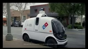 دامینو در این سرویس جدید خود با همکاری Nuro اقدام به تبلیغ دلیوری پیتزا با ماشین های رباتیک کرده است. همانطور که در تیزر تبلیغاتی این شرکت مشاهده کردید، دامینو هوش مصنوعی این ماشین ها را نمایش می دهد و در پیام خود از این که این ربات از ترافیک دوری می کند نیز استفاده کرده است.